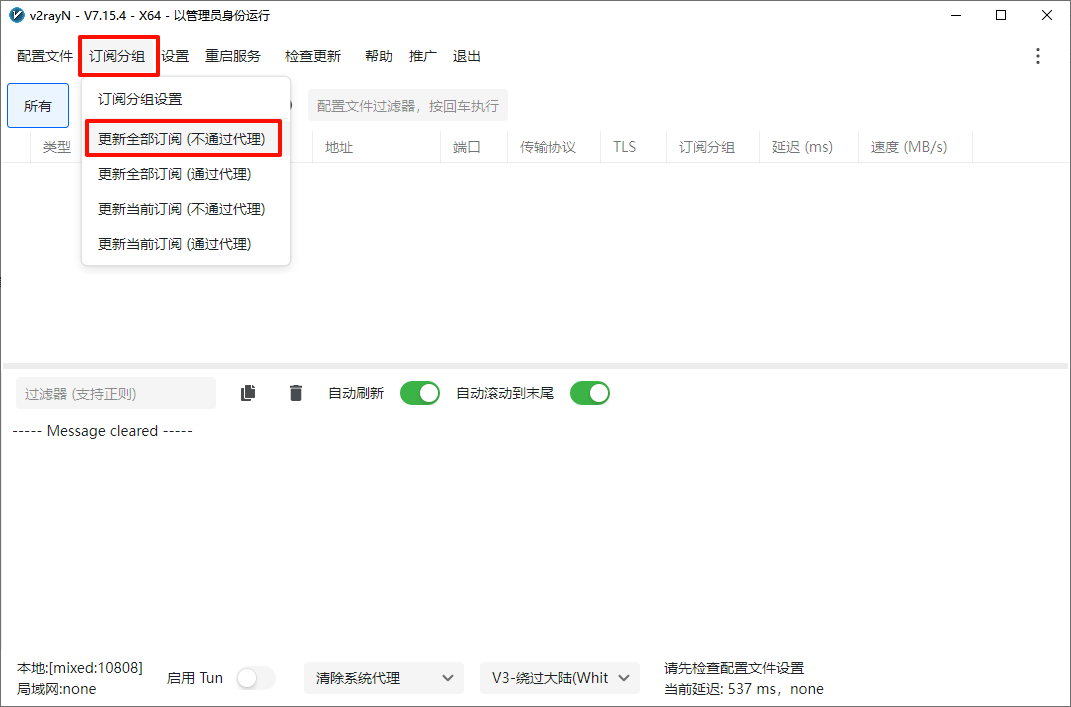 2、点击【订阅分组】-【更新全部订阅】按钮;