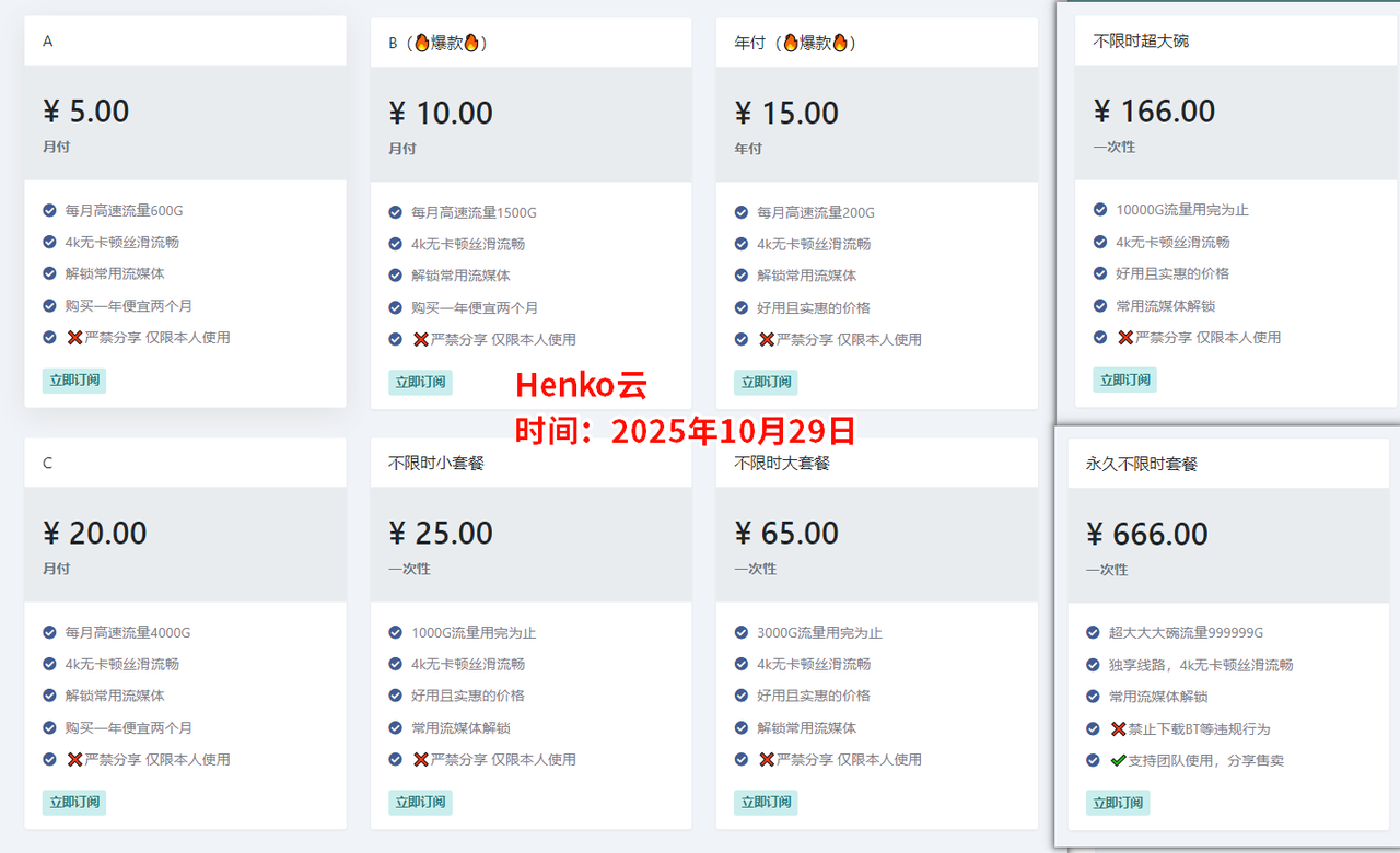 Hneko云订阅参考